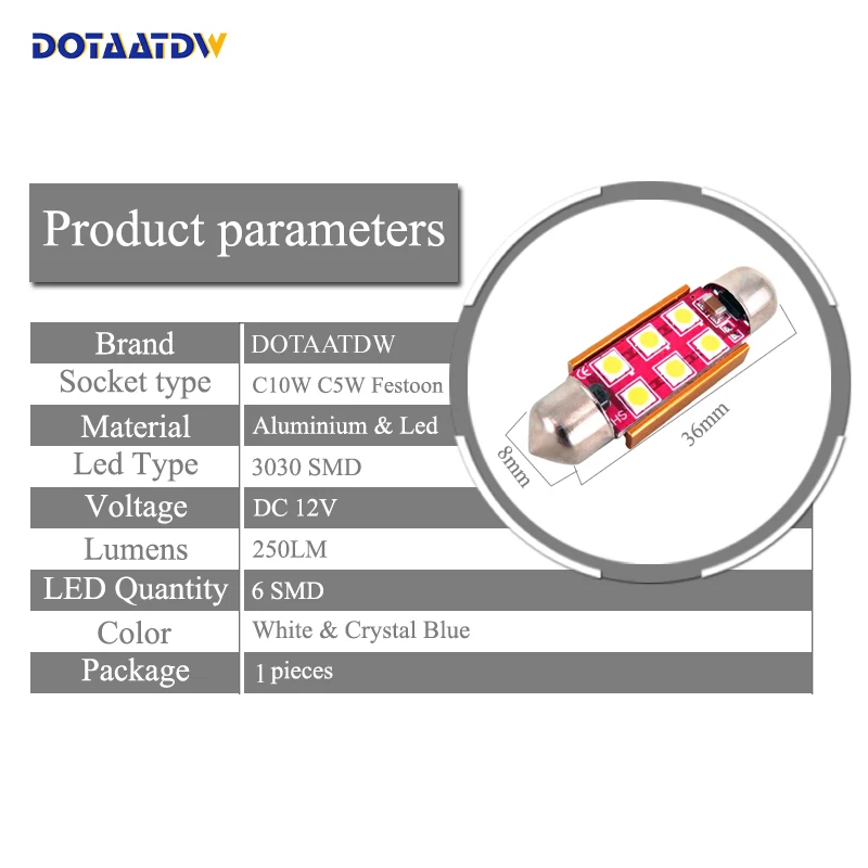 Size:36mm (1.50")12V Festoon Dome Light LED Bulbs