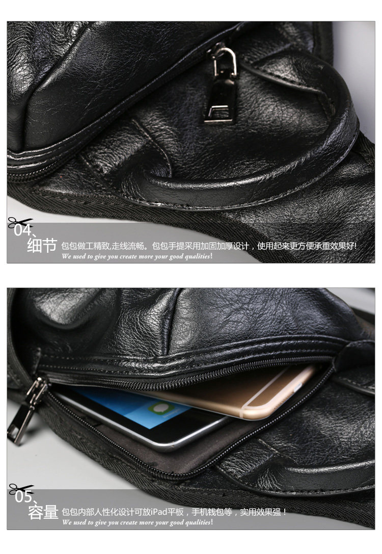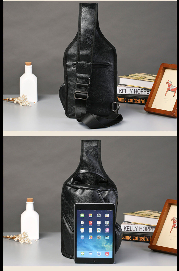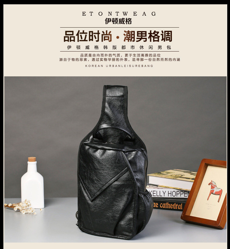 新款男士胸包时尚 韩版男包潮流单肩斜跨包 休闲街头胸前包皮