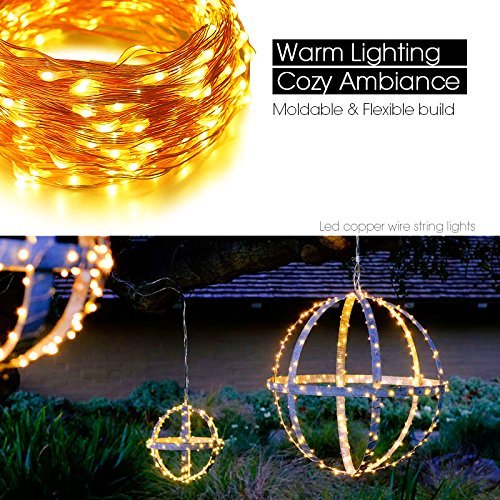 - 66Ft LED copper wire string lights length is more suitable for DIY effect, the low adapter for this wire string lights is guaranteed with UL.