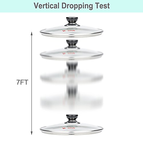Heavy Duty Tempered Glass: 4 mm thickness tempered glass lid is much stronger than most lids in markets. Tested by vertically dropping from 7 Feet. Refund ALL if Crack.