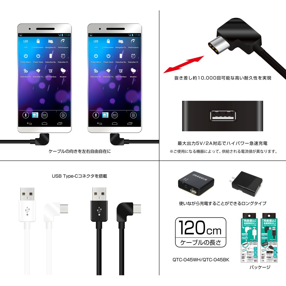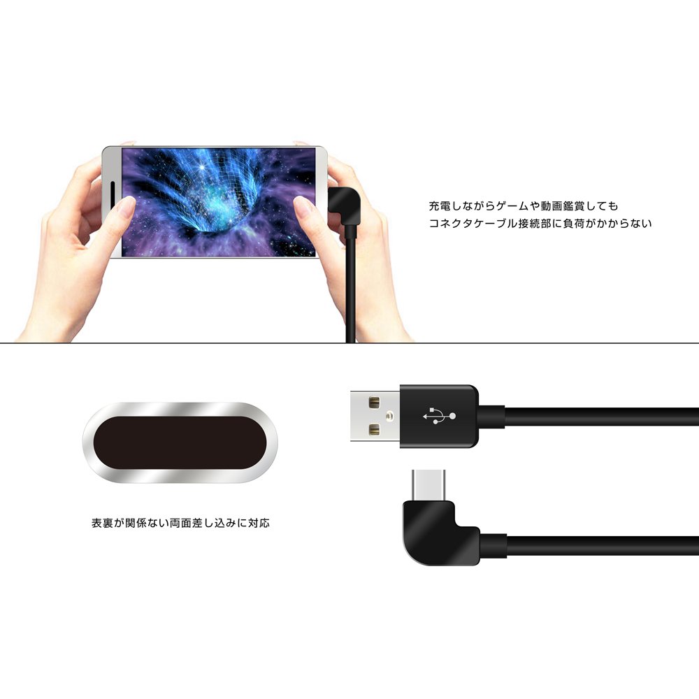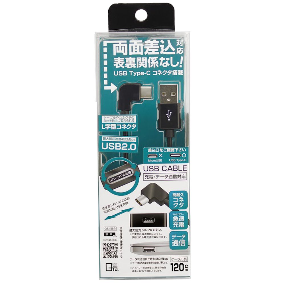 Quality Trust Japan [new MacBook Nexus correspondence] USB Type-C USB2.0 charging communication L-shaped cable (120cm) Black