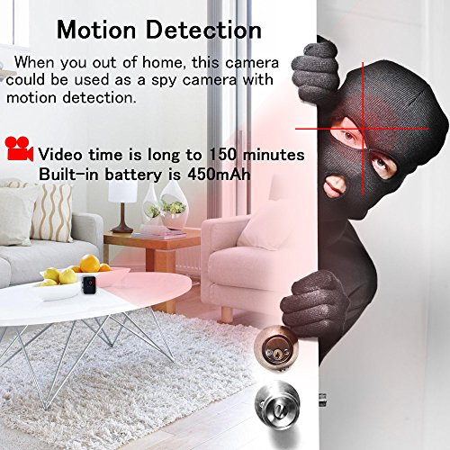 【Lasting record】The HD tiny security camera with built-in high-capacity 450mAh lithium battery for up to 150 minutes, and could be recharged by DC-5V charger while working and continue recording videos, the happy time can not be interrupted, equipped cable also could be plug in TV OUT screen for displaying and transmitting data.