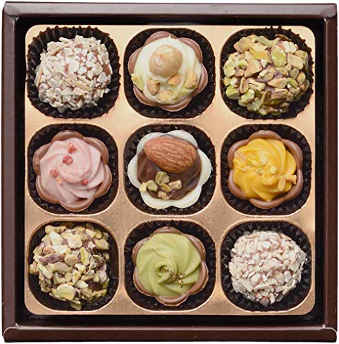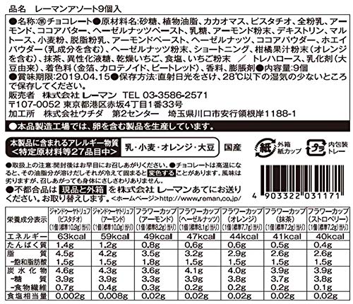 原材料:砂糖、植物油脂、カカオマス、ピスタチオ、全粉乳、アーモンド、ココアバター、ヘーゼルナッツペースト、乳糖、アーモンド粉末、デキストリン、マルトース、小麦粉、脱脂粉乳、アーモンドペースト、ヘーゼルナッツ、ココアパウダー、ホエイパウダー(乳成分を含む)、ヘーゼルナッツ粉末、ショートニング、柑橘果汁粉末(オレンジを含む)、抹茶、異性化液糖、乾燥いちご、食塩、いちご粉末 / トレハロース、乳化剤(大豆由来)、着色料(金箔、カロテノイド、ビートレッド)、香料、膨脹剤
