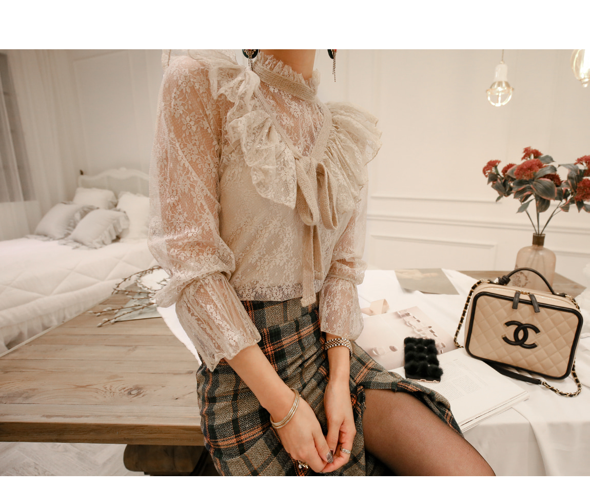 バストラインのフリルやリボンディテールでフェミニンなムードを起こさせます