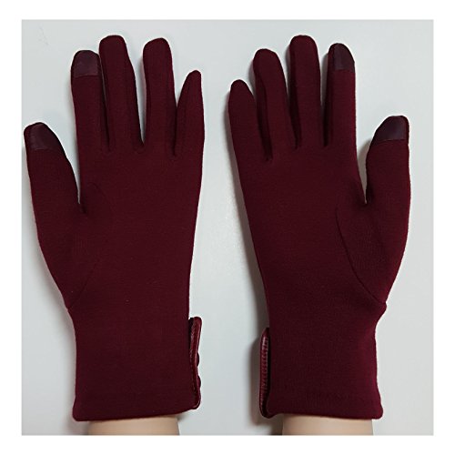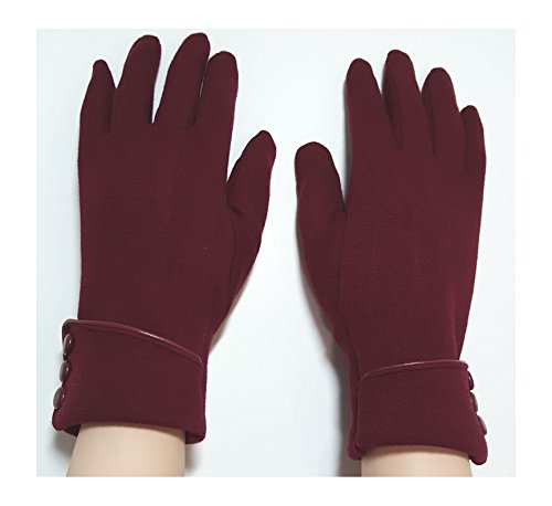 Product Description Gloves with faux button cuffs and touch pad fingertips for cell phone usage. Deep red burgundy cotton poly blend for beauty and comfort. Romantic and feminine. One size. Fits Small thru XL. 0