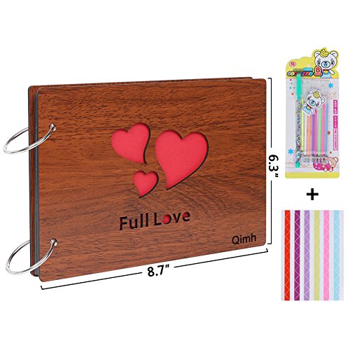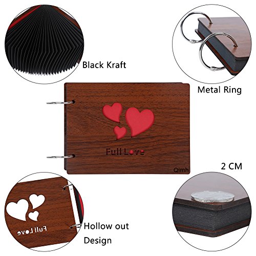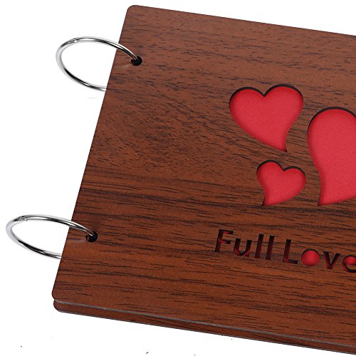 Qimh DIY Photo Album Vintage Wood Album 8x6inch Scrapbook Album Photo Storage,Memorry Book(Full Love)
