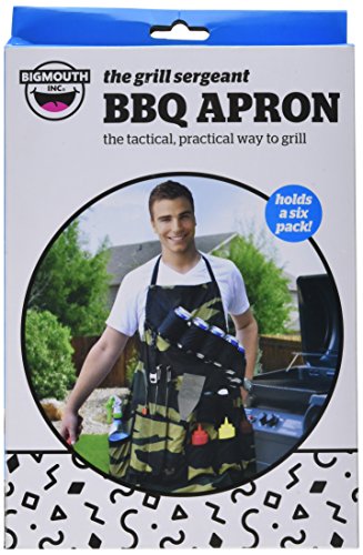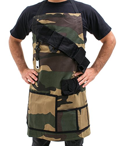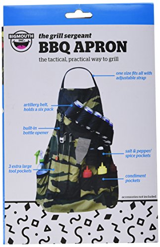 - Our unique camouflage grilling apron holds everything a real man could want or need for an afternoon of fun.