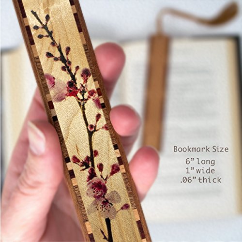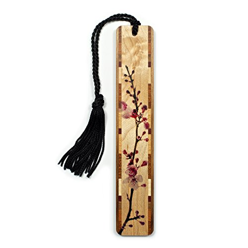 Cherry Blossom - Branch in Color Wooden Hand Made Bookmark on Maple with Black Tassel - Search B072B8LYGG for Personalized version