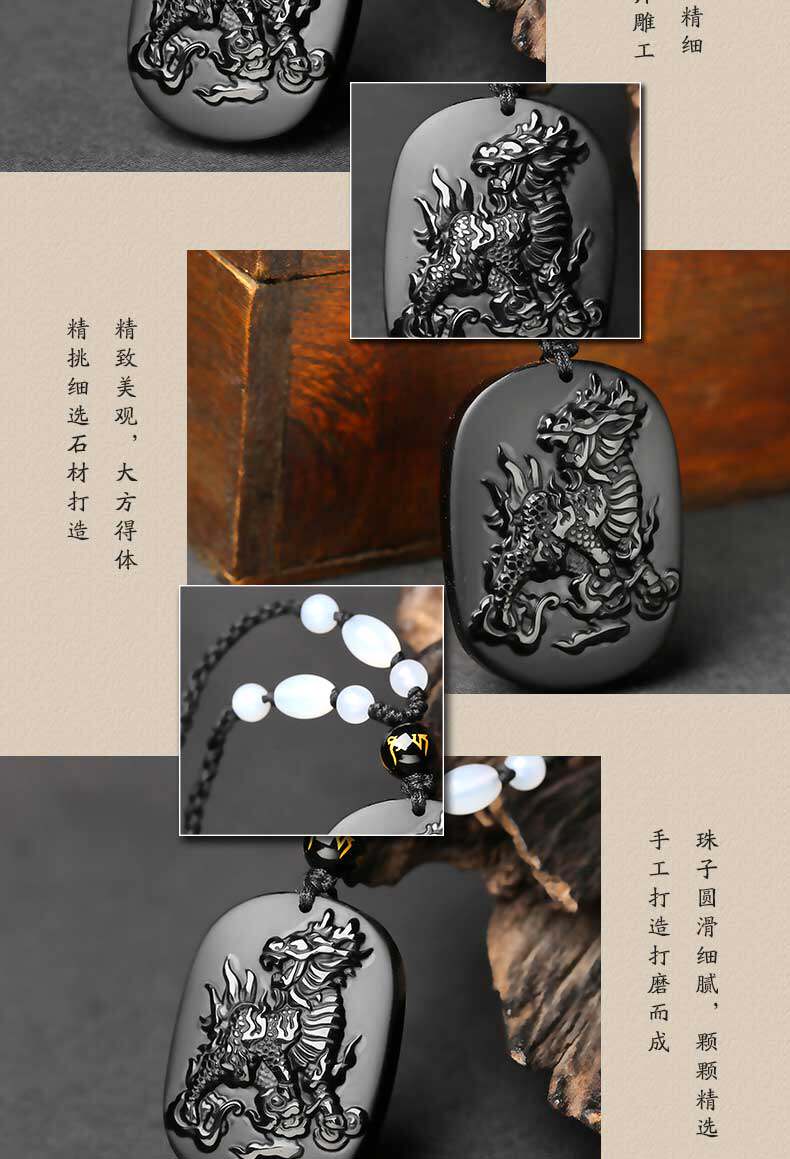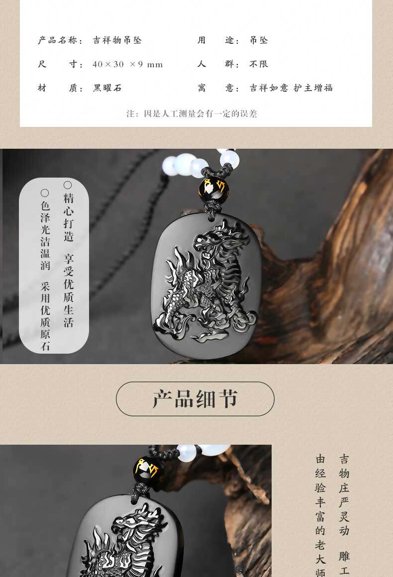 开光属猪吊坠吉祥物男女款 麒麟送榜黑曜石吊坠护身符礼物
