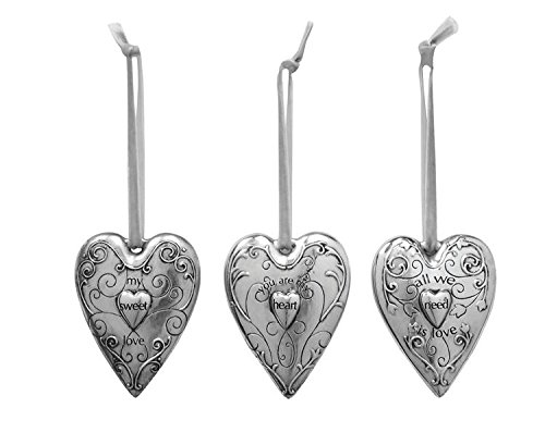 3½''H Shabby Chic Silver Resin Heart Ornament, Set of 3
