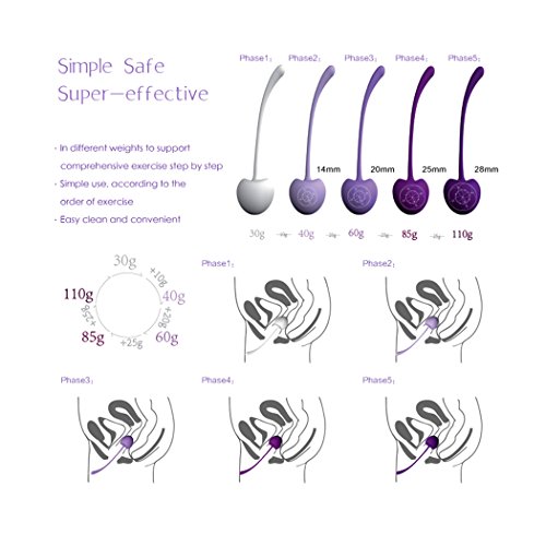 Product features Effective: the Kegel ball are small weight balls which were designed for increasing the sense of vagina exercise and exercise the pelvic floor muscles to recover the elasticity of vagina Safe: this product contains safe silicone that has enough elasticity to endure strong pull force. And it can increase the sense of vagina to cause intense activity and help recover the vagina shape. Easy to use: the kegel balls were designed to different weights for full workout and different needs, you can use it as the needs that you exercise. And it is very easy to wash only by warm water.