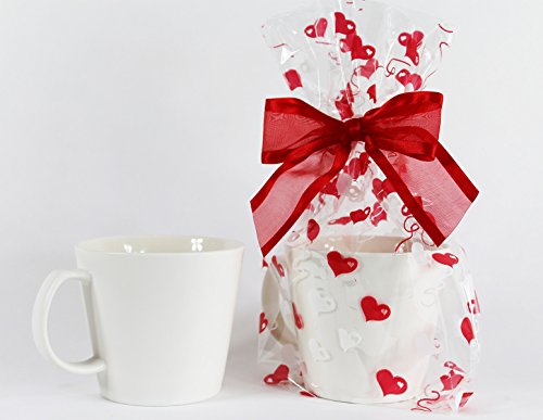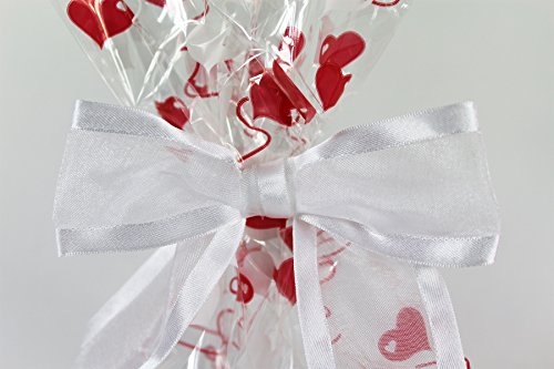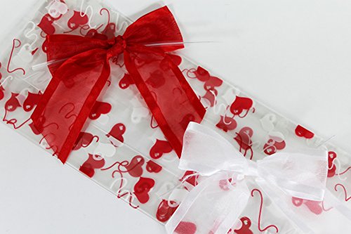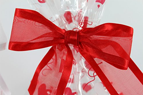 (Saybrook Products)/Stationery Party Supplies/Gift Wrapping Supplies/DIRECT FROM USA/Valentine Hearts Cellophane Treat/Party Favor Bags with Red White Twist-Tie Organza Bow. Set ...