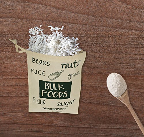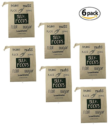 Earthwise Organic Cotton Reusable Produce Bags for Shopping & Storage of Bulk Foods ,Nuts, Grains,Rice, Flour, Sugar Produce Drawstring - Set of 6