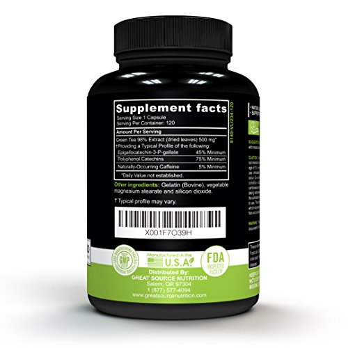 Green Tea Extract Supplement EGCG for Healthy Weight Loss by Great Source Nutrition – Natural Fat Burner, Boosts Metabolism, Promotes...