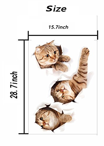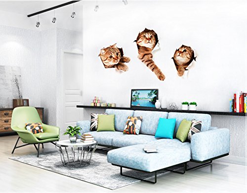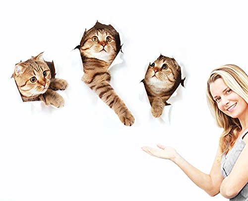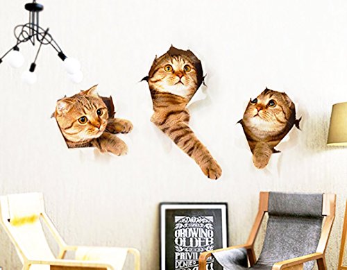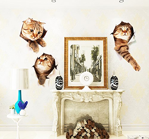 3D Wall Decals Stickers Vivid Decors Murals (Cat) for Room Home Removable Wall Art Decals Wall for kids Rooms DIY Home Decoration (Cat)