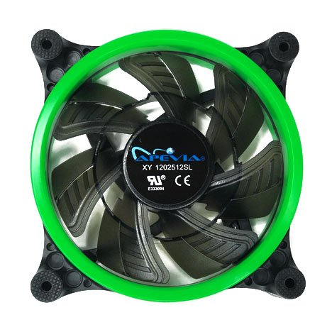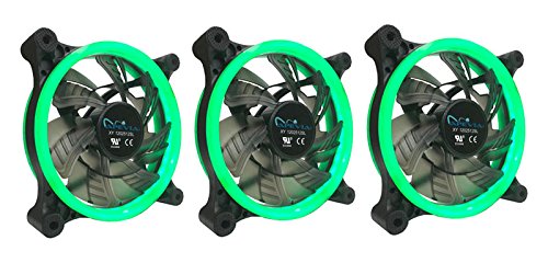 APEVIA 312L-CGN 120mm Silent Dual Rings Green LED Fan with 32 x LEDs & 8 x Anti-Vibration Rubber Pads (3 Pk)