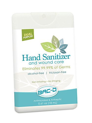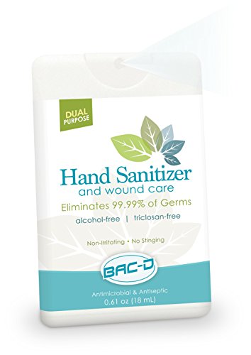 Back-d non alcohol hand and wound sanitizer kills 99.99 percent of bacteria and viruses, including staph, MRSA, E. Coli and salmonella without drying or irritating skin