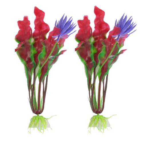 Uxcell 2-Piece Fish Tank Aquatic Leaf/Lotus/Plant, Red/Green/Purple