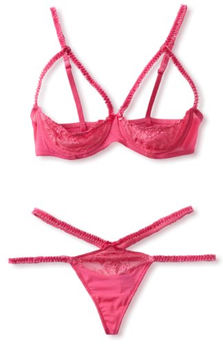 2 piece open cup shelf bra with matching thong with double side straps