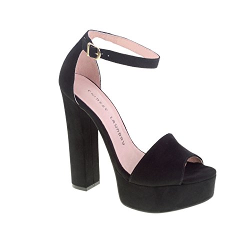 Studio : Chinese Laundry Footwear Publisher : Chinese Laundry Footwear Binding : Shoes Product Description Sky-high suede retro platform sandals featuring an ankle strap and chunky heel. You`ll have legs for days when you pair the Avenue with your favorite dress or mini. By Chinese Laundry.?Manmade suede 5 3/4" heel 1 1/2" platform Color - BLACK 0