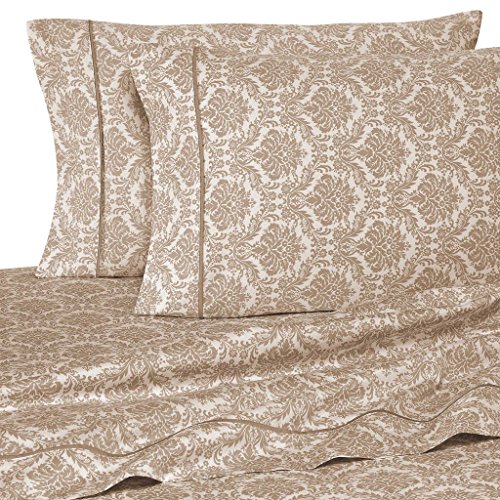 Rajlinen 400 Thread Count 100% Cotton Sheet Set Jacquard Printed Queen 15" Deep In Taupe