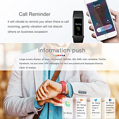 Sync Your Phone Notification. Call and Message remind, when there is call or message ( SMS, Facebook, Skype etc) incoming, it will vibrate to remind you with contact name and SMS content display. Support Sedentary remind and mute alarm clock.