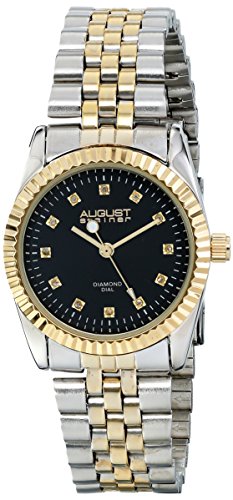 August Steiner Women's AS8046TTG Diamond Accented Black Dial Silver & Yellow Gold Bracelet Watch