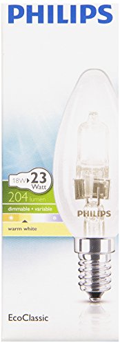 -. Title : Philips 82054600 ECOCLASSIC30 KZL 18W E14 K Energiesparende Hochvolt-Halogen Kerzenlampe klar