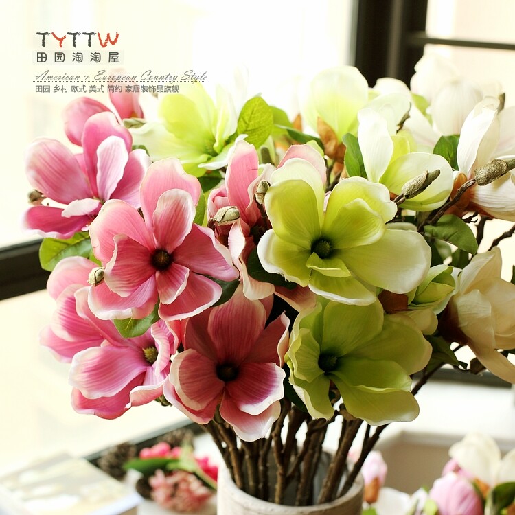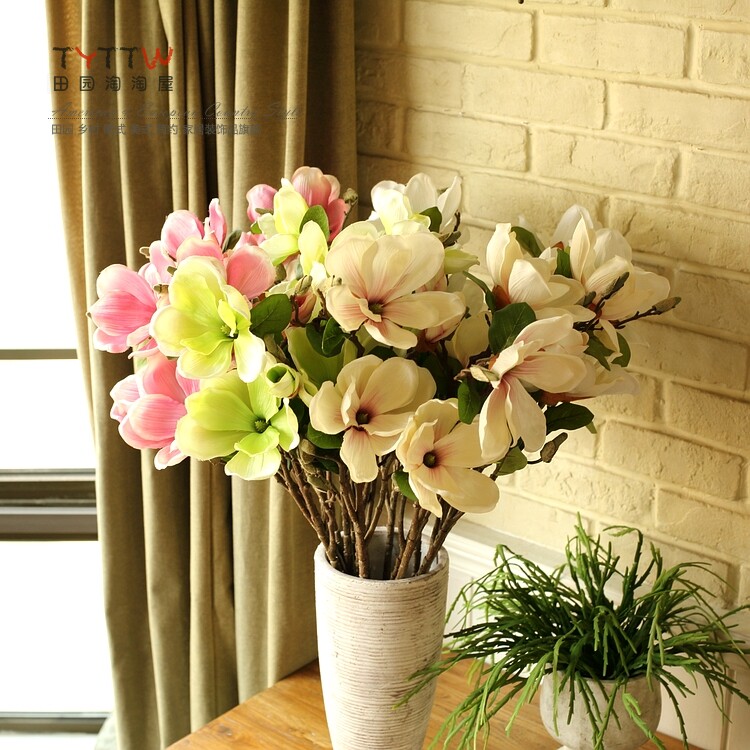 此款玉兰花采用高档绢布精工制作,仿真度高,颜色润色过度自然,共3个颜色,每一个颜色都典雅高贵,大方得体,是不可多得的一款仿真花。花朵是家居装饰中经久不衰的元素,可以是实实在在的植物,也可以是处处都有的装饰用品,只要你有心,房间的角角落落都可以“花香四溢”,生机勃勃。适合摆放客厅,餐桌,阳台,飘窗,吧台,酒店大 堂,吧台。也可用于婚纱摄影!