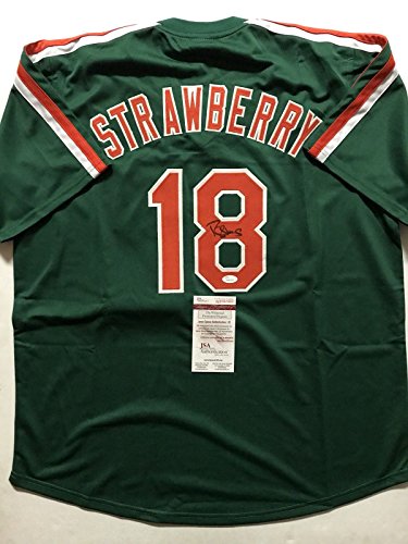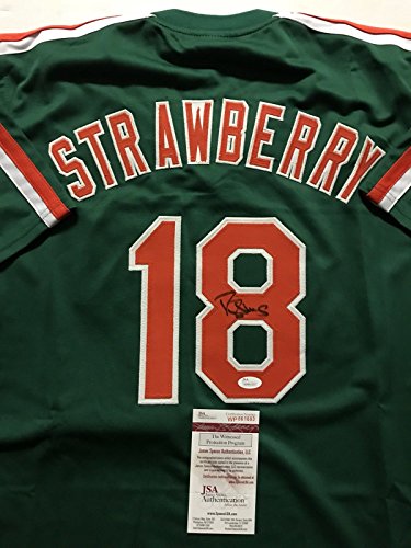 Autographed/Signed Darryl Strawberry New York Mets Green Baseball Jersey JSA COA