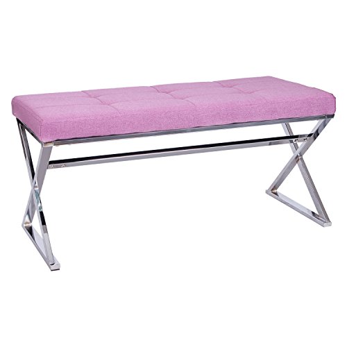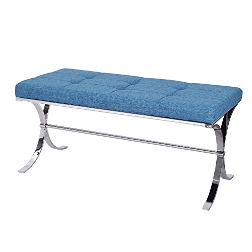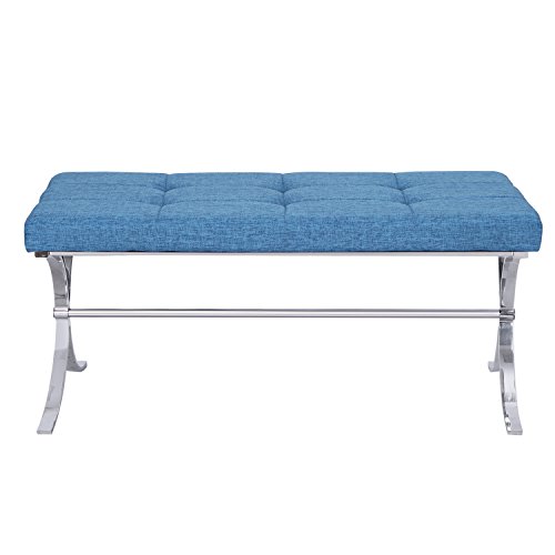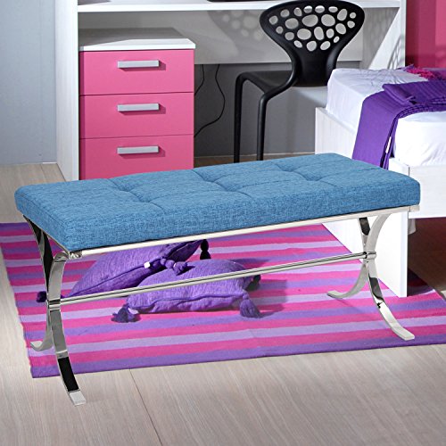 -. Title : Asense 18"inches Tufted Linen Fabric Metal Bench With Button, Footstool