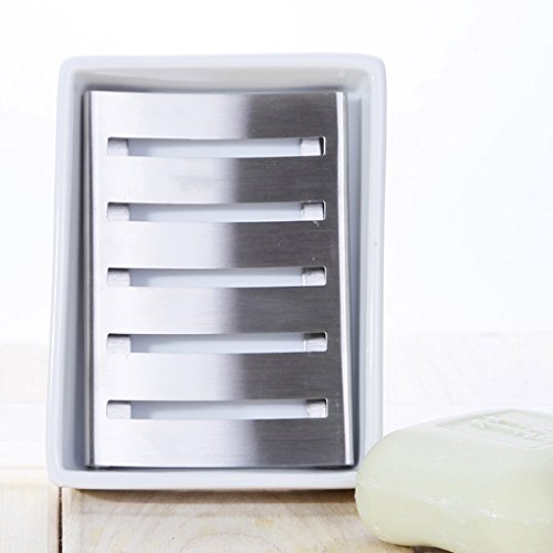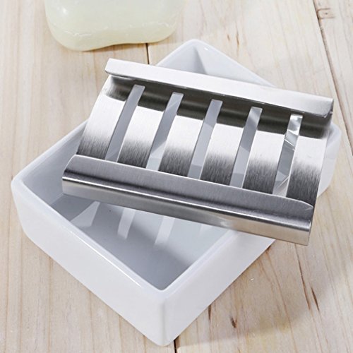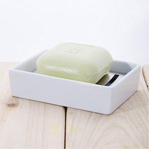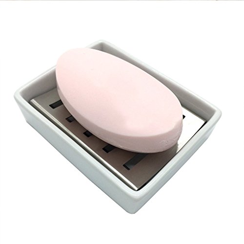 Ceramic Stainless Steel Soap Dish for Bathroom Shower Kitchen Wash Hands Soap Holder Soap stand Soap Saver