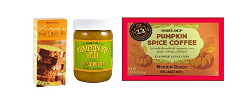 TRADER JOE'S PUMPKIN SPICE COFFEE SINGLE SERVE CUPS are just that, Keurig K-Cup-ready cups filled with our very own Pumpkin Spice Coffee. It's the same coffee you've come to know and love over the course of many Pumpkin Seasons, and now you can have it in a single-cup brewer friendly format. Oh so convenient. TRADER JOE'S PUMPKIN BREAD AND MUFFIN MIX combined with eggs, oil, and water, makes a generous loaf of moist and fluffy, lightly spiced pumpkin bread or a dozen standard-sized muffins. One of Trader Joe's favorite things about homemade pumpkin bread is the way the subtle flavor of the pumpkin is perfectly complemented by the kicky additions of cinnamon and nutmeg. The mix has all these things, and they have done the majority of the mixing and measuring for you. If you find yourself feeling adventurous, add chopped nuts; dried fruit like raisins, cranberries, or apples; or shredded carrots or zucchini for an extra splash of color and texture - or go all out and add all of these things to make a Fall Harvest Loaf unique to your kitchen. Kids we know really love it mixed with chocolate chips. PUMPKIN PIE SPICE COOKIE BUTTER began as a twinkle in Trader Joe's eyes, and a box of Pumpkin Joe Joe's. The cookies are transformed into smooth and creamy cookie butter, with real pumpkin purée blended in to seriously amp up the pumpkin flavor. Grab a spoon and take a taste - pumpkin pie, right?Feature