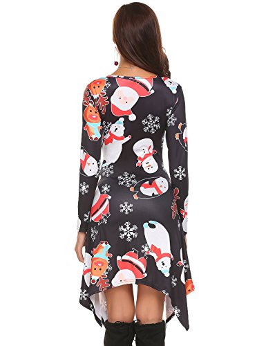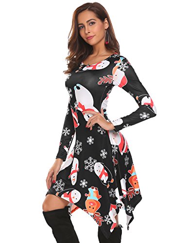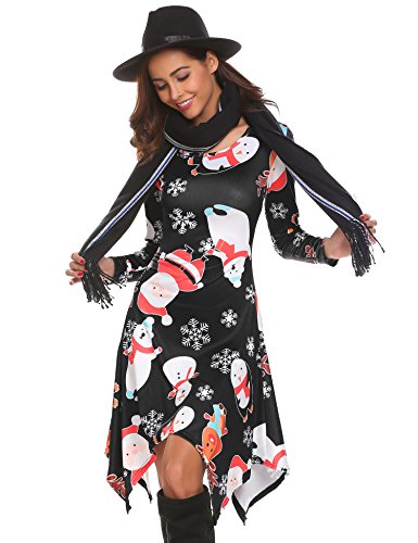 Xmas Dress for Women Long Sleeve Asymmetric Hem Fit and Flare Dress A Line T-shirt Dress Santa claus XL