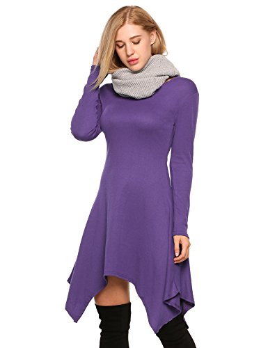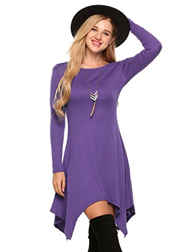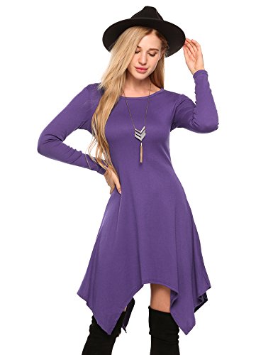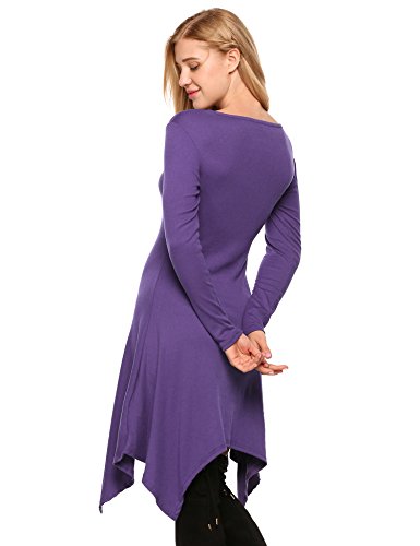 Swing Casual Dress for Women Long Sleeve Asymmetric Hem T-shirt Tunic Dress Purple Medium