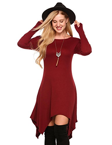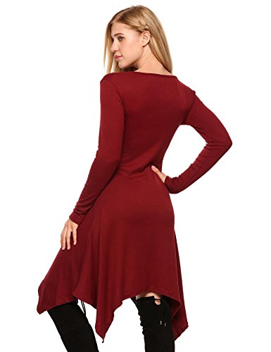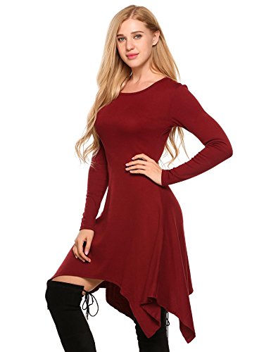 Beyove Women's Asymmetrical hem stitching Long Sleeve Dress, Wine Red, Small