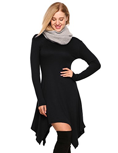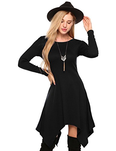 Beyove Women's Asymmetrical hem stitching Long Sleeve Dress, Black, Medium