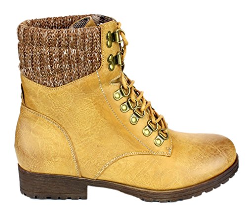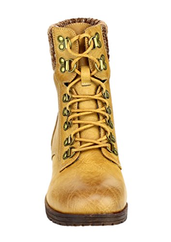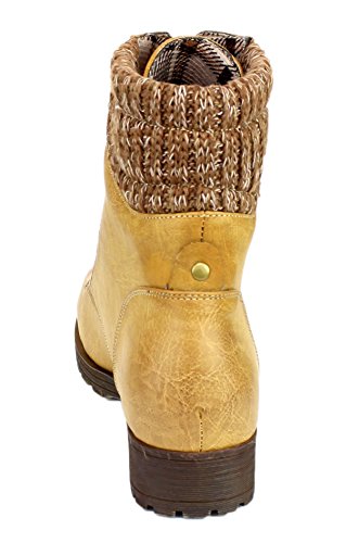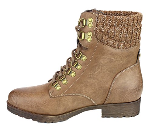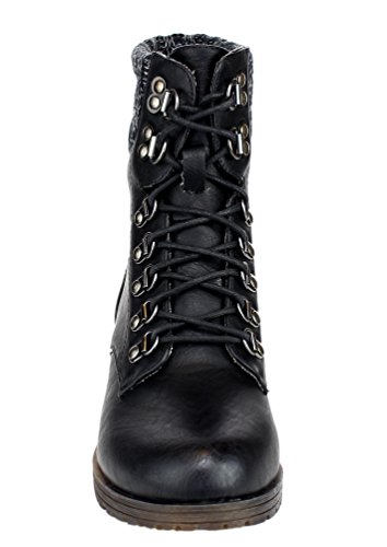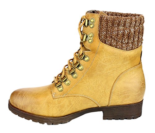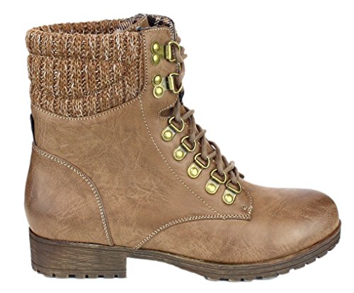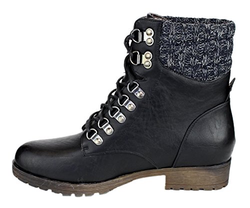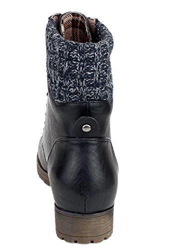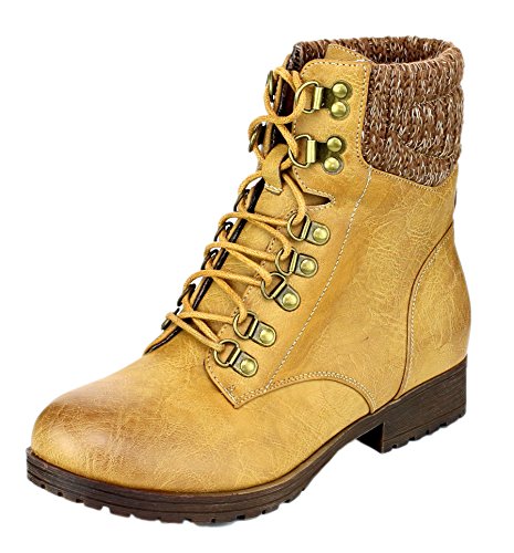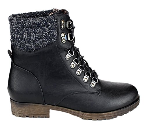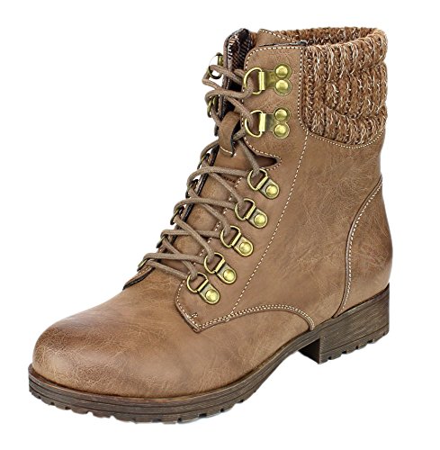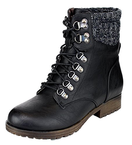 Refresh Women's Wynne-07 Knit Cuff Lace Up Combat Winter Boot