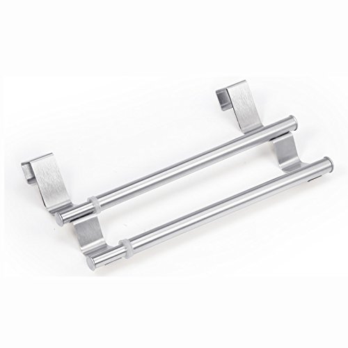 2 Towel Bars Stainless Steel Coat Hook Brushed Over Cabinet Storage Organizer Hanger for Kitchen, Bathroom, Hotel (Double)