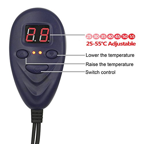 Temperature display; 7 temperature levels to adjust (25~55); IC control box with LED indication; 55 degree thermal protector.