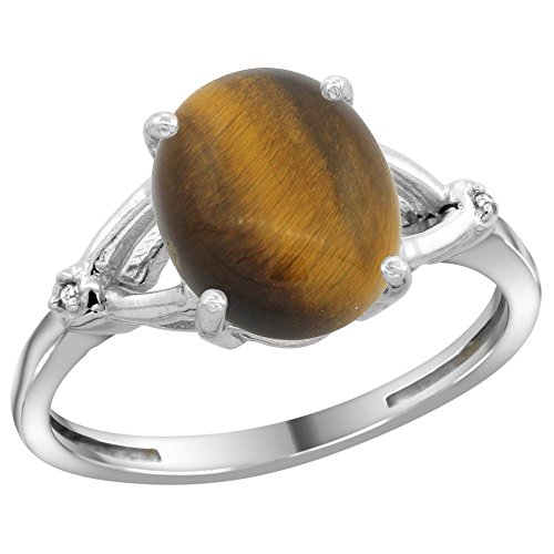 -. Title : Sterling Silver Diamond Natural Tiger Eye Ring Oval 10x8mm, 3/8 inch wide, sizes 5-10