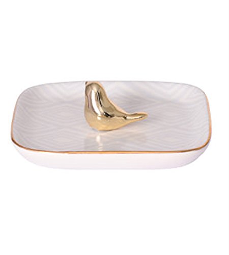 Gold Plated Bird White Ceramic Jewelry Dish Ring Holder