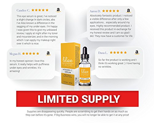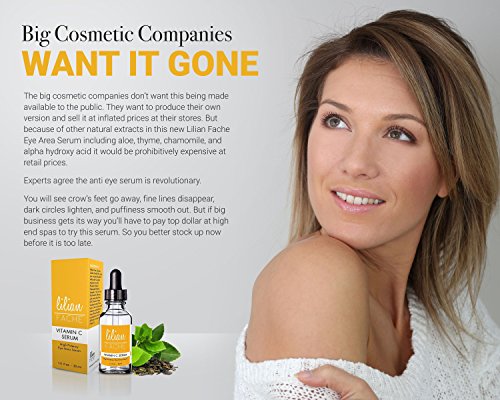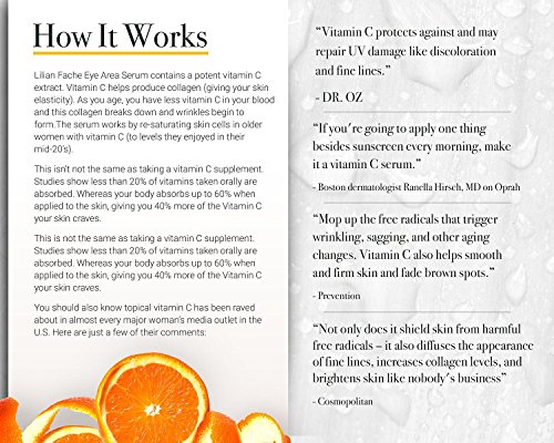 Your friends will wonder what anti-aging wrinkle skin care you are using! they'll think you spent hundreds of dollars, or lots of time, covering up your wrinkles, fine lines, red patches, dryness and large pores. But you can simply tell them, it was easy and affordable using vitamin c skin serum by Lilian face! it works better because it doesn't just temporarily plump up your skin with water. Most skin creams, even expensive ones, are mostly water. Our exclusive Lillian face vitamin C for face serum was carefully formulated with two known, effective anti-aging nutrients: vitamin c and alpha-hydroxy acid. Just think of how your skin looked when you were 10 years old. Smooth, clear, blemish free and no wrinkles. Both of these powerful ingredients work inside your skin cells to return your skin to that stage of former youth and beauty.Feature