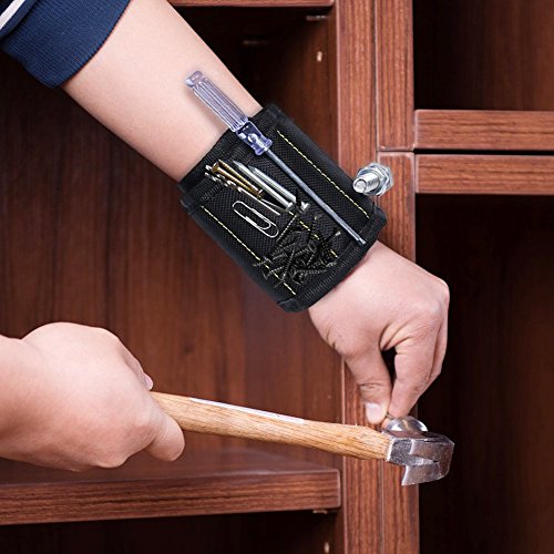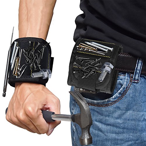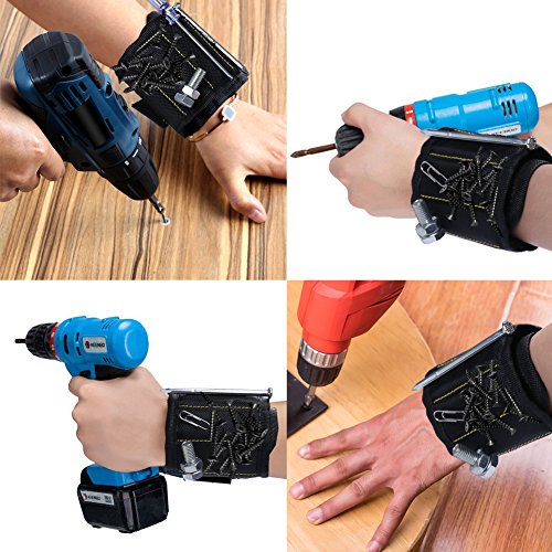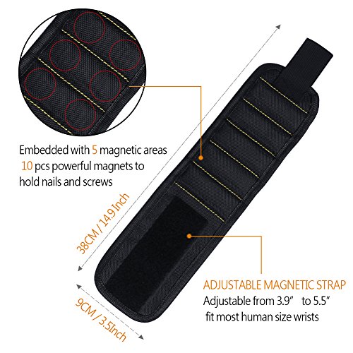 - SUPER STRONG MAGNETS: Embedded with 5 powerful magnets, can hold screws, nails drill bits fasteners, scissors, and other small tools perfectly. This magnetic wristband is the best solution to having screws and nails at hand as you're working, provides a third helping hand on ladders and tight areas
