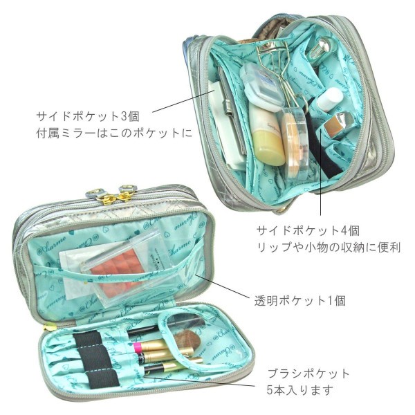 fk094igrjsポケットがたくさん付いて、整理整頓もラクラク大きく開くので化粧品の出し入れもしやすいです サイズ 幅18×奥行き5×高さ10cm 個装サイズ:18×5×10cm 重量 150g 個装重量:190g 仕様 開閉/片側:ダブルファスナー、片側:ファスナー ブラシポケット:5本分 サイドポケット:7個 透明ポケット:1個 付属品 ポケットミラー 生産国 中国 収納力バツグンの化粧ポーチ ポケットがたくさん付いて、整理整頓もラクラク大きく開くので化粧品の出し入れもしやすいです