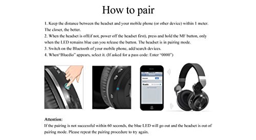 -. Binding : Electronics -. Brand : Bluedio -. Color : white111 -. EAN : 0701622301727 -. Feature : 1. Great Sound: Bluedio engineers have spent two years in creating T2 Ultra-big speaker, diameter up to 2.24 inches, trying to bring you the best music experience: rich and strong bass, crisp and clear highs. / 2. Cool Look: T2, T is the abbr. for Turbine which we think can best stand for your endless passion and energy. And T2 is rotary, you can rotate the ear cup up to 195°, easy to carry and save more space. / 3.Bluetooth 4.1 Chip: It's the latest Bluetooth chip, which can transmit data at high speed and bring you smooth music experience. And its low power ensures long lasting battery life: up to 40 hours continuous music time. Also it works well with most mobile phones like iPhone/HTC/Motorola/LG/Samsung... / 4. Comfortable to wear: Its ear cup and headband top are padded with sufficient foam and covered with soft leather. What you may not notice is that we adjust the headband, based on Ergonomics theory, to fit all head sizes. / 5. Bluetooth/Wired: T2 is not only a Bluetooth headset, but also a wired headset. With the included cable, you can still enjoy favorite music when the battery runs low. -. Label : Bluedio -. Manufacturer : Bluedio -. Model : T2WCA001 -. MPN : T2WCA001 -. PackageQuantity : 1 -. PartNumber : T2WCA001 -. ProductGroup : CE -. ProductTypeName : PHONE_ACCESSORY -. Publisher : Bluedio -. Studio : Bluedio -. Title : Bluedio T2 Turbine Bluetooth Wireless Stereo Headphones with Microphone, 57mm Drivers, 195° Rotary Folding, White -. UPC : 701622301727