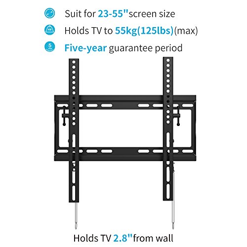 -. Brand : Everstone -. Feature : EVERSTONE UNIVERSAL DESIGN - Fits most of 32"-75" TVs up to VESA 600 x 400 and 165 lbs. CHECK these wall mount tv bracket informtion before you buy. / TILT, ROTATE FUNCTION - Flush 2.8" Profile;+5°/-15°Tilt for better viewing. / TYPES OF WALL - This tv wall mount fits 16" and 24" wooden studs plus masonry, not for dry wall alone. / EASY SETUP AND INCLUDE ALL NECESSARY MOUNTING HARDWARE - Easy installation with decent instruction, all installation and mounting hardware included. Pulling straps locks and releasesTV breezily. Comes with spirit level and HDMI cable as gifts. The screws in the package are supplied as standard. If your TV needs longer screws, pls. let us know. / WHAT YOU GET - Provide with 5-year warranty coverage. If you experience ANY issues, please contact us. -. Label : topstone -. Manufacturer : topstone -. ProductGroup : Home Improvement -. ProductTypeName : HARDWARE -. Publisher : topstone -. Studio : topstone -. Title : Everstone TV Wall Mount Bracket Low Profile