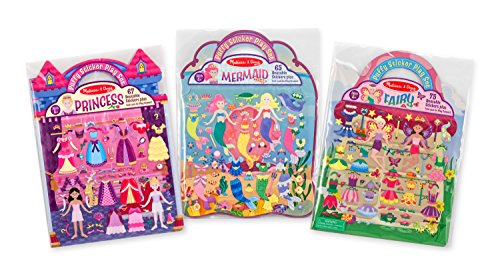 [Description] Set of 3 reusable puffy sticker play sets Includes 150+ reusable puffy stickers and three double-sided scene cards Stickers layer to create unique outfits and designs Convenient carry-handle format_ perfect for travel Great for fine motor skills_ hand-eye coordination_ creative expression_ narrative thinking_ and independent play