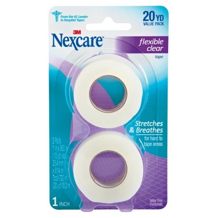 Hospital brand - Transpore Surgical Tape. A porous, clear tape for use on active, hard to bandage areas like knees, elbows, fingers, and/or where stretching occurs. Stretches and conforms to body contours for greater holding power. Hypoallergenic adhesive