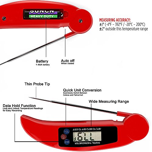 - BE A CONFIDENCE COOK. Insert the tip into your food, in 4-7 seconds you will have an accurate readout and clear displayed on the large dial. It is food thermometer with stainless steel probe, a great kitchen “assistant” for you to prepare a tasty meal.